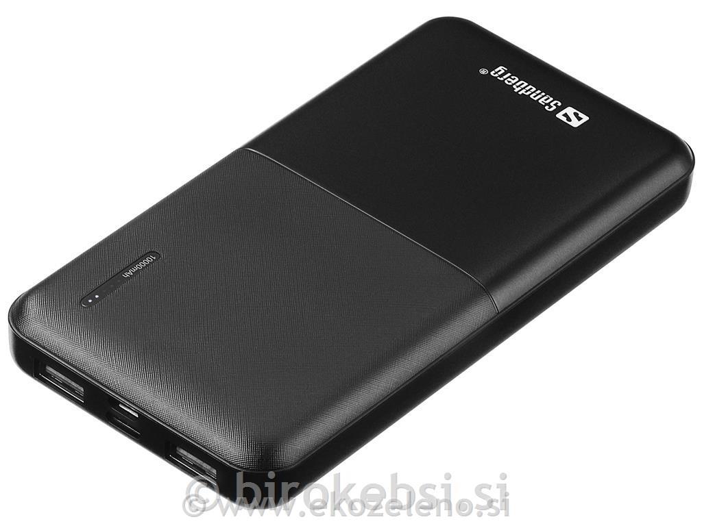 Prenosna baterija Sandberg Saver Powerbank 10000 se napaja preko vhoda USB, energijo pa lahko nato prenese v mobilni telefon ali drugo prenosno napravo.